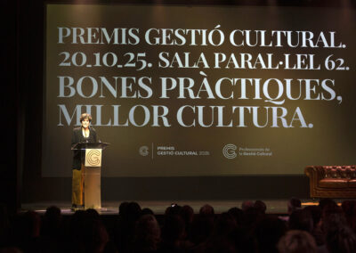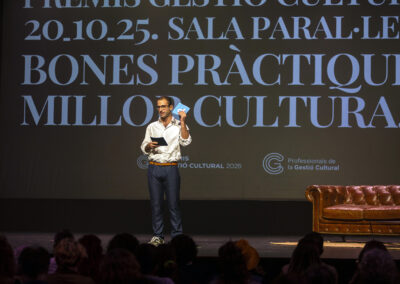 Premia persones, projectes o organitzacions que contribueixin de manera notable al desenvolupament del sector mitjançant l’aplicació i la promoció activa de les bones pràctiques en gestió cultural.